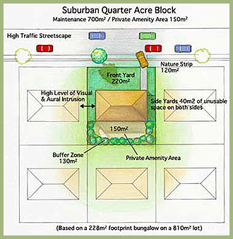 - By building on the 30m2 backyard buffer zone, floor areas up to 230m2 can be accommodated on a lot of this size, without reducing the size of the courtyard garden.