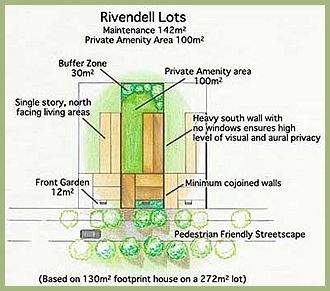 - Rivendell's courtyard houses have a second story on the street frontage, so the floor area of the courtyard house used in this example is actually around 200m2.